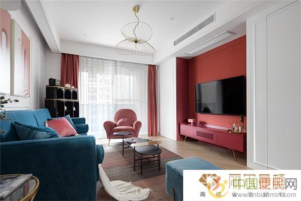 在红色背景之中点缀蓝色家居,当冷与暖相互碰撞,典雅奢美的气韵迎面而来c~n~b~i~a~n~m~i~n~c~o~m。