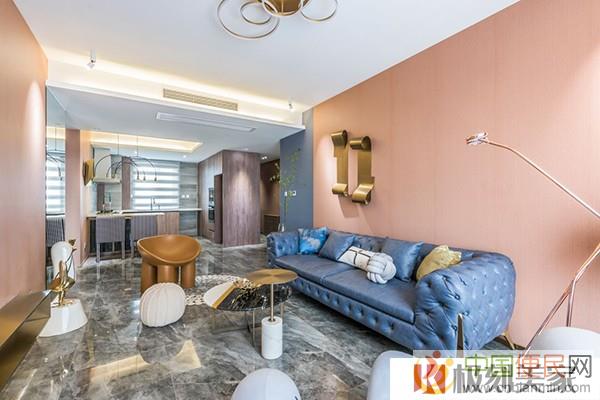 看看设计师是怎么在这个进深只有3米3的客厅实现增大空间的魔法:由于高层的挑高都不是很高,做完吊顶会显得空间更加压抑www.cnbianmin.com中国便民网。在电视背景墙一侧增加了一面大镜子,起到大大扩张了空间的作用。吸顶金属主灯加局部射灯重点照明,窗帘盒后面和电视背景墙也暗藏了灯带,不做吊顶的情况下能让灯光如此有层次。客厅的家具是根据空间比例定制的,适当的尺寸让空间显得不局促。搭配精致的黄铜壁饰,个性落地灯,和金色的椅子在撞色的空间,提升质感来源www.cnbianmin.com。